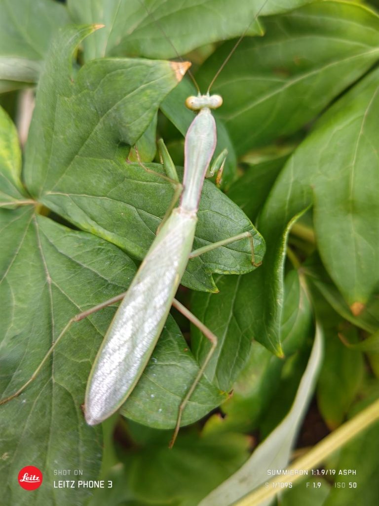 緑のカマキリは保護色なので注意をしていないと気付かないかも知れません。