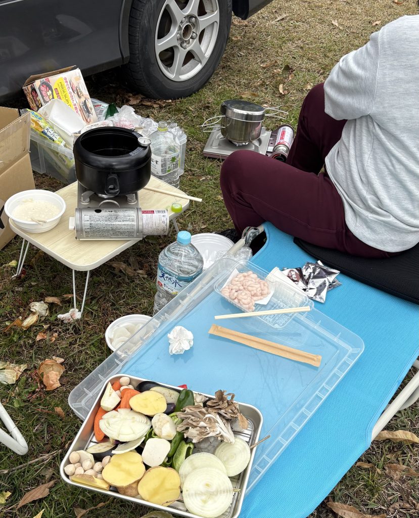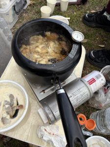 クソ寒い中🥶での天ぷらパーティの様子です。