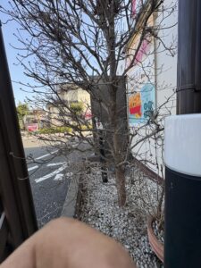 写真は花水木の蕾ですが☕️モスバーガーのテラス席から撮りました。
